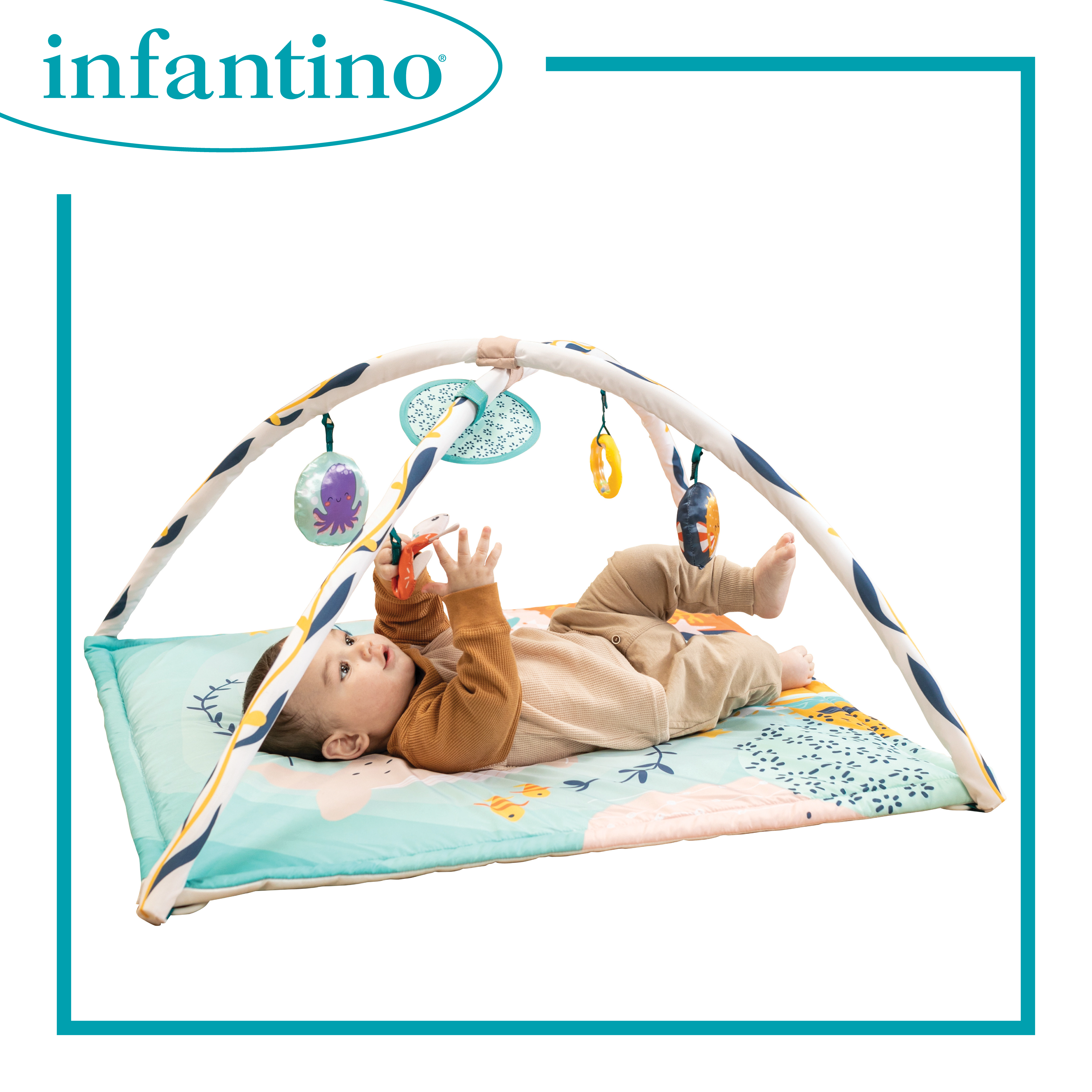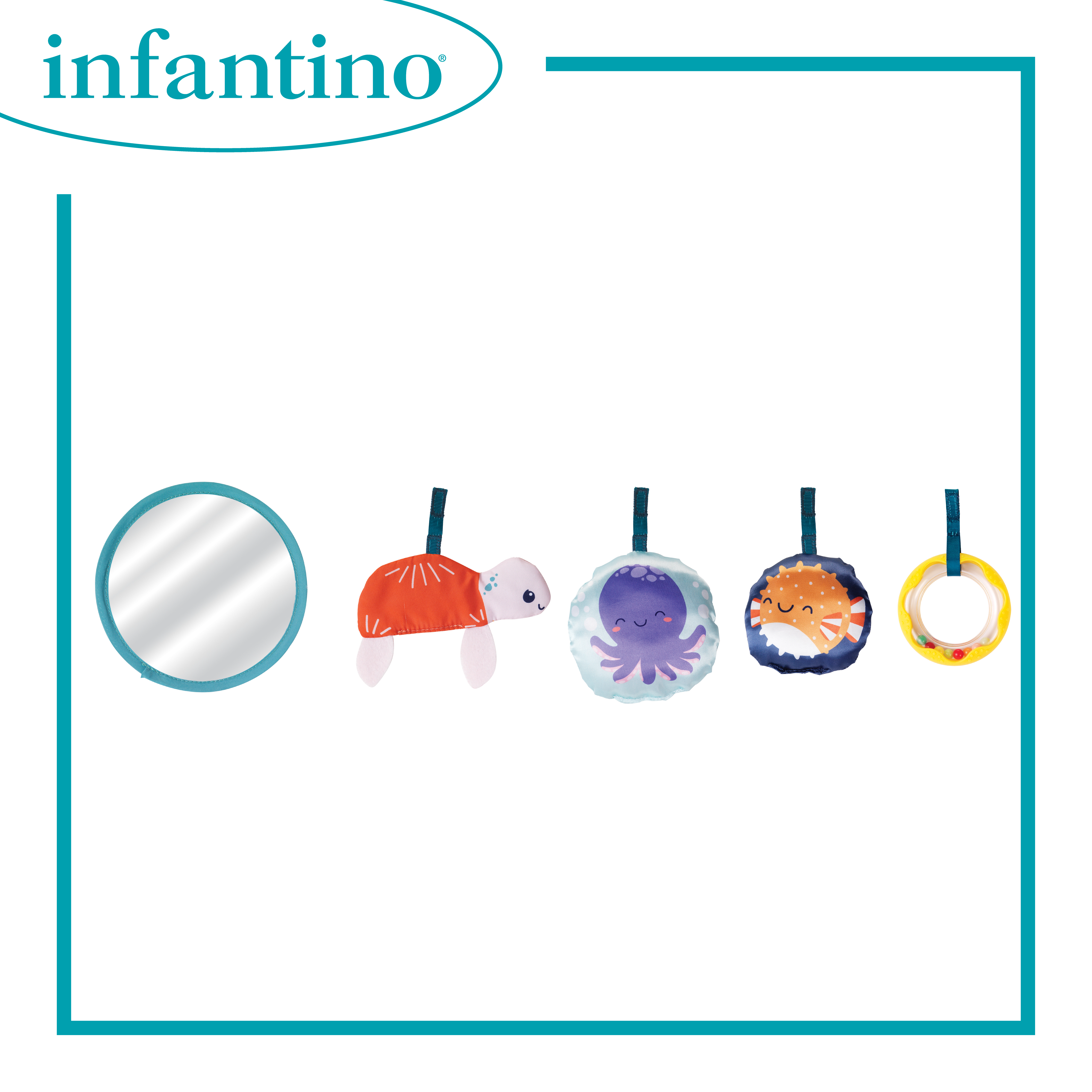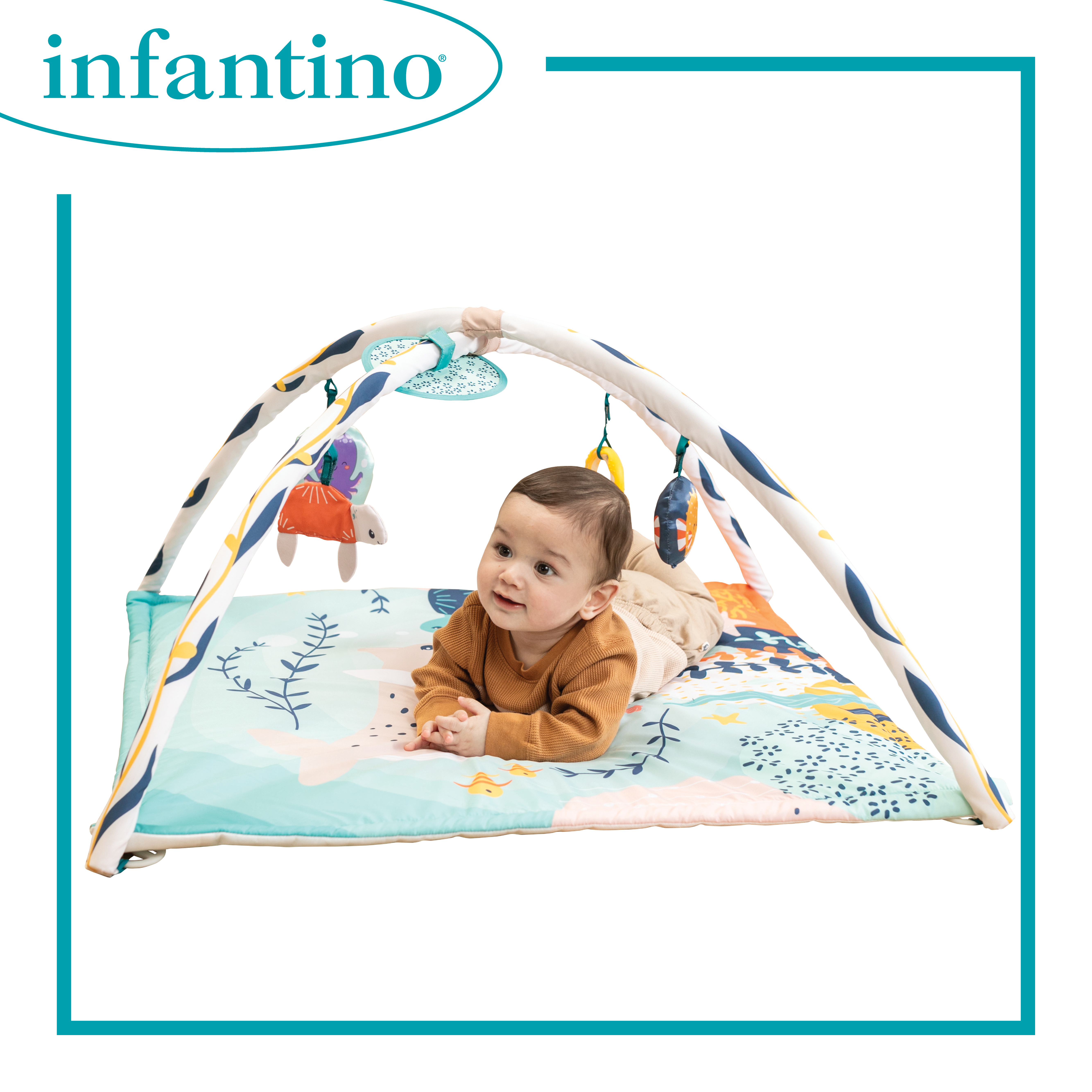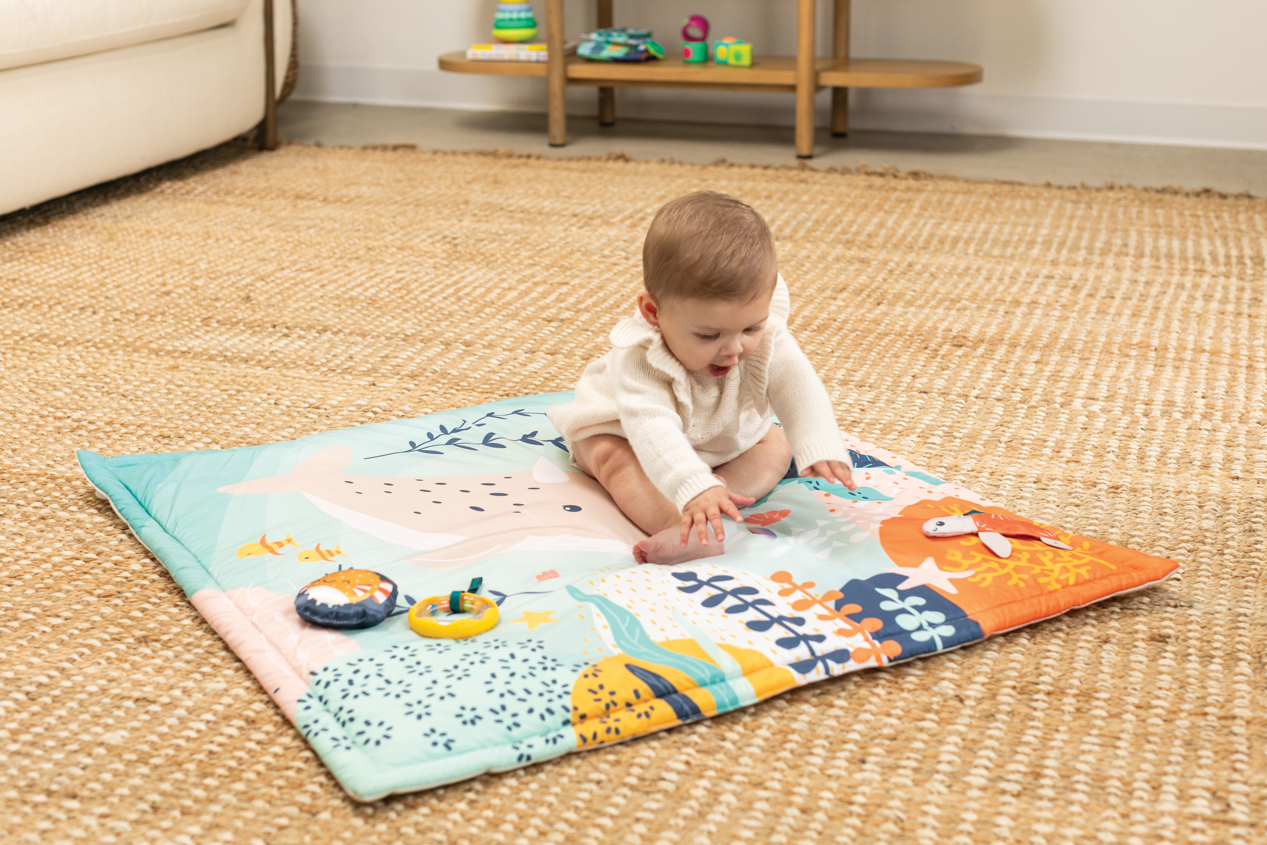 適合初生嬰兒使用 海洋主題的遊戲玩墊,配有不同懸掛玩具,以全新的視角欣賞水下世界 3 種遊戲方式: 1.躺著玩 2.趴著玩 3.坐下來玩 5個以海洋為主題的懸掛玩具,包括一面躲躲貓鏡子,營造出完美的遊樂環境 隨著寶寶從嬰兒到幼兒的成長,多種遊戲模式支持早期發展技能,包括手眼協調能力、大小肌肉的運動發展 遊戲墊(32x32寸)寬敞舒適,適合寶寶探索和玩耍