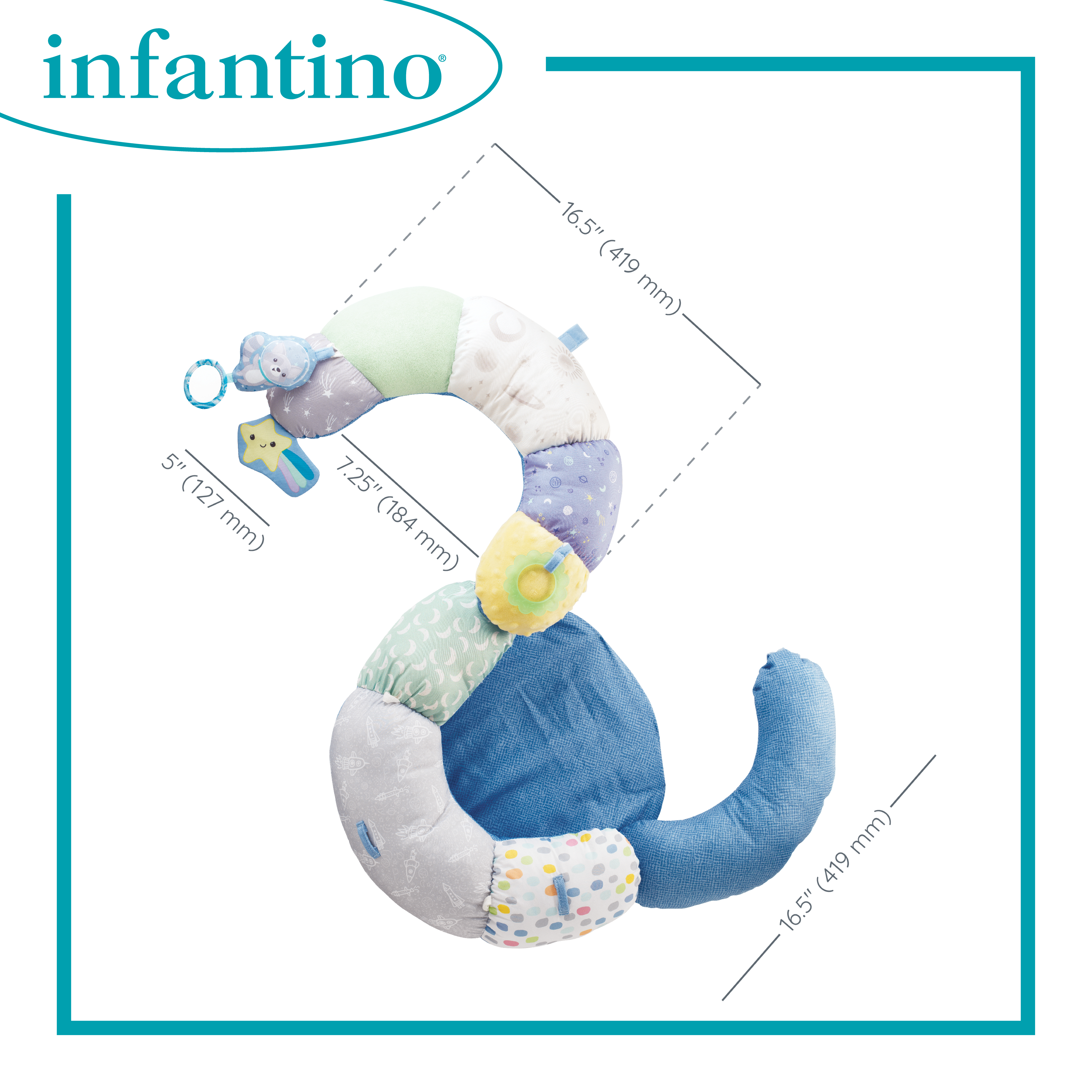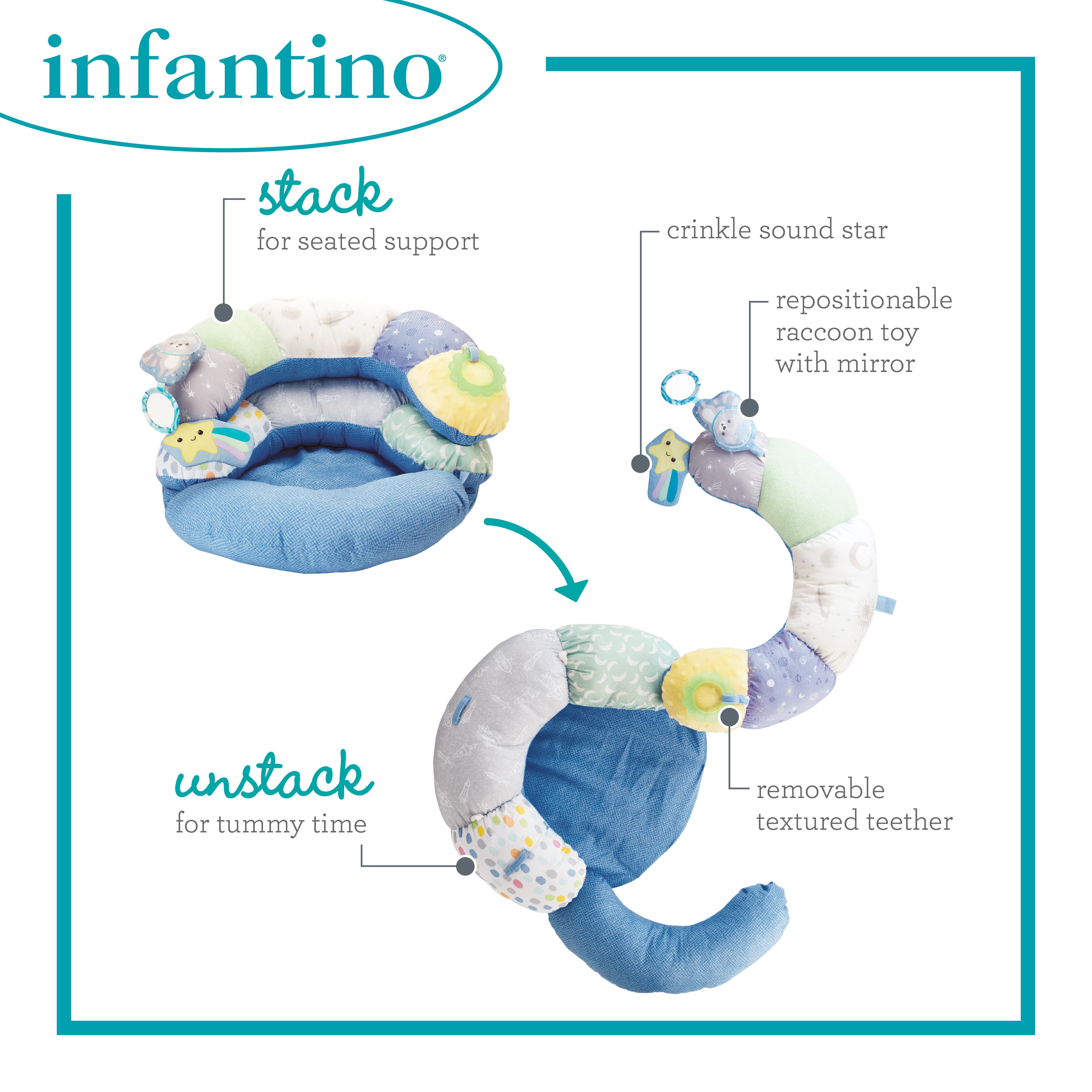 適合初生嬰兒使用 提供俯臥時間和坐姿支撐 包括兩個可拆卸和可重新定位的玩具、 一個不含 BPA 的紋理牙膠 在寶寶趴著的時候給予支撐 幫助發展頭部和頸部肌肉 堆疊成“C”形,用於坐姿支撐 可參考【得意毛毛蟲靠墊】影片: https://youtu.be/JyxrJWfOk8U