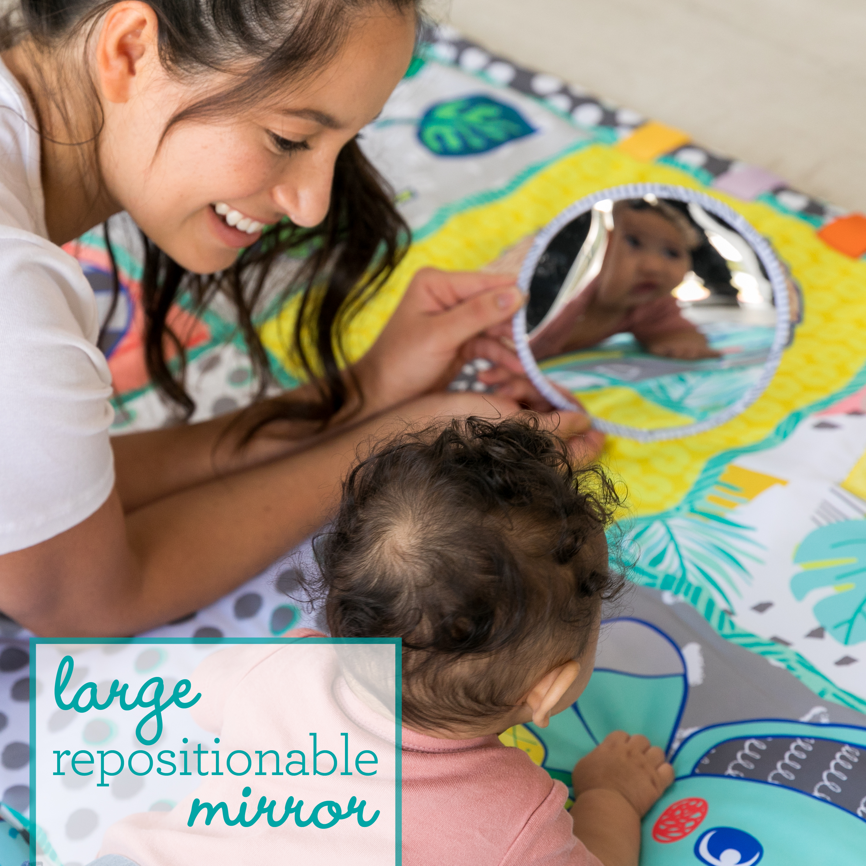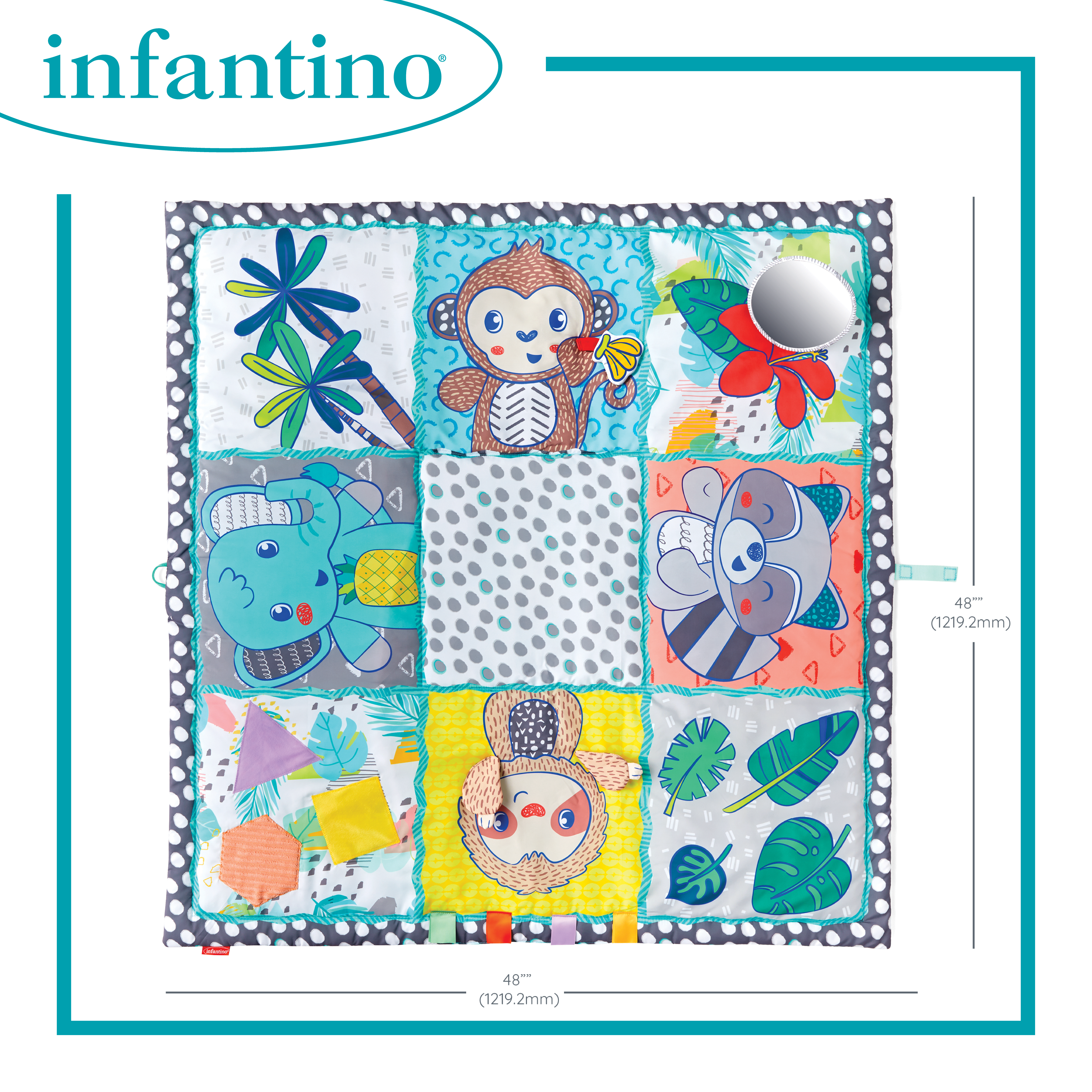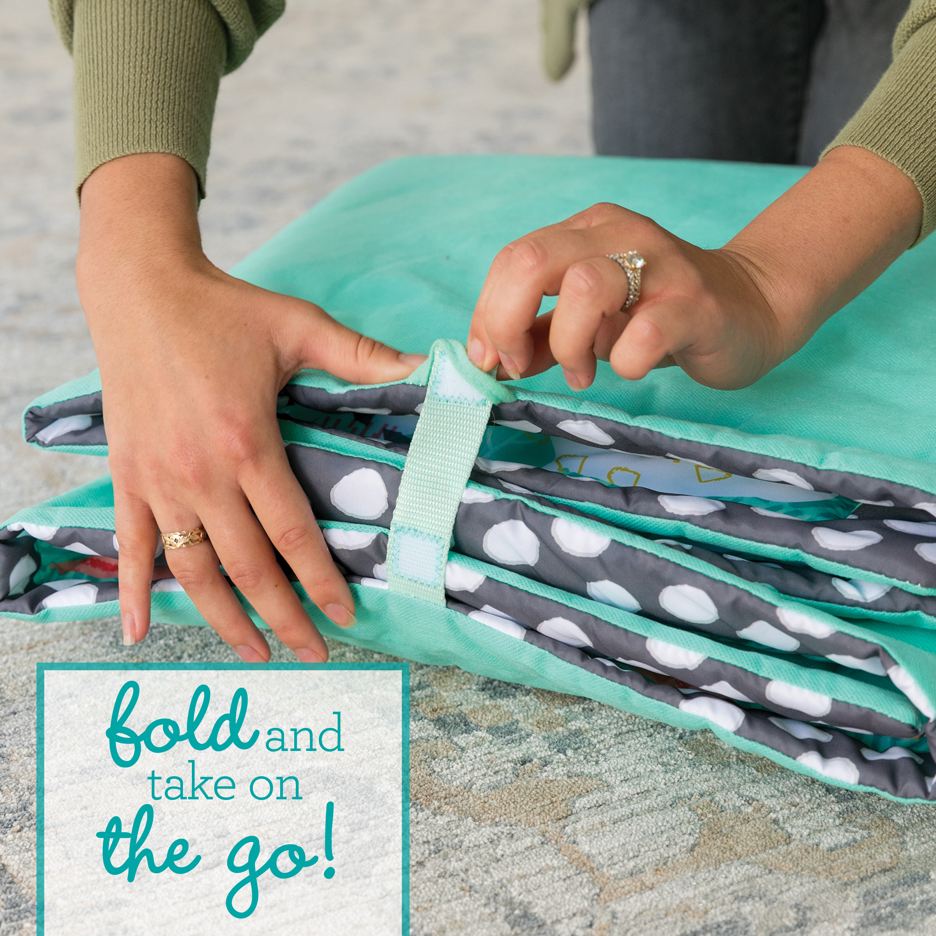 適合初生嬰兒使用 巨大的121.9 x 121.9 cm 遊戲墊為滾動, 爬行,坐著和Tummy Time 提供了充足的空間 便攜設計可輕鬆折疊至40.6 x 60.9 cm 內置的活動喚醒了好奇的心思和感官, 同時鼓勵小肌肉的發展 可機洗