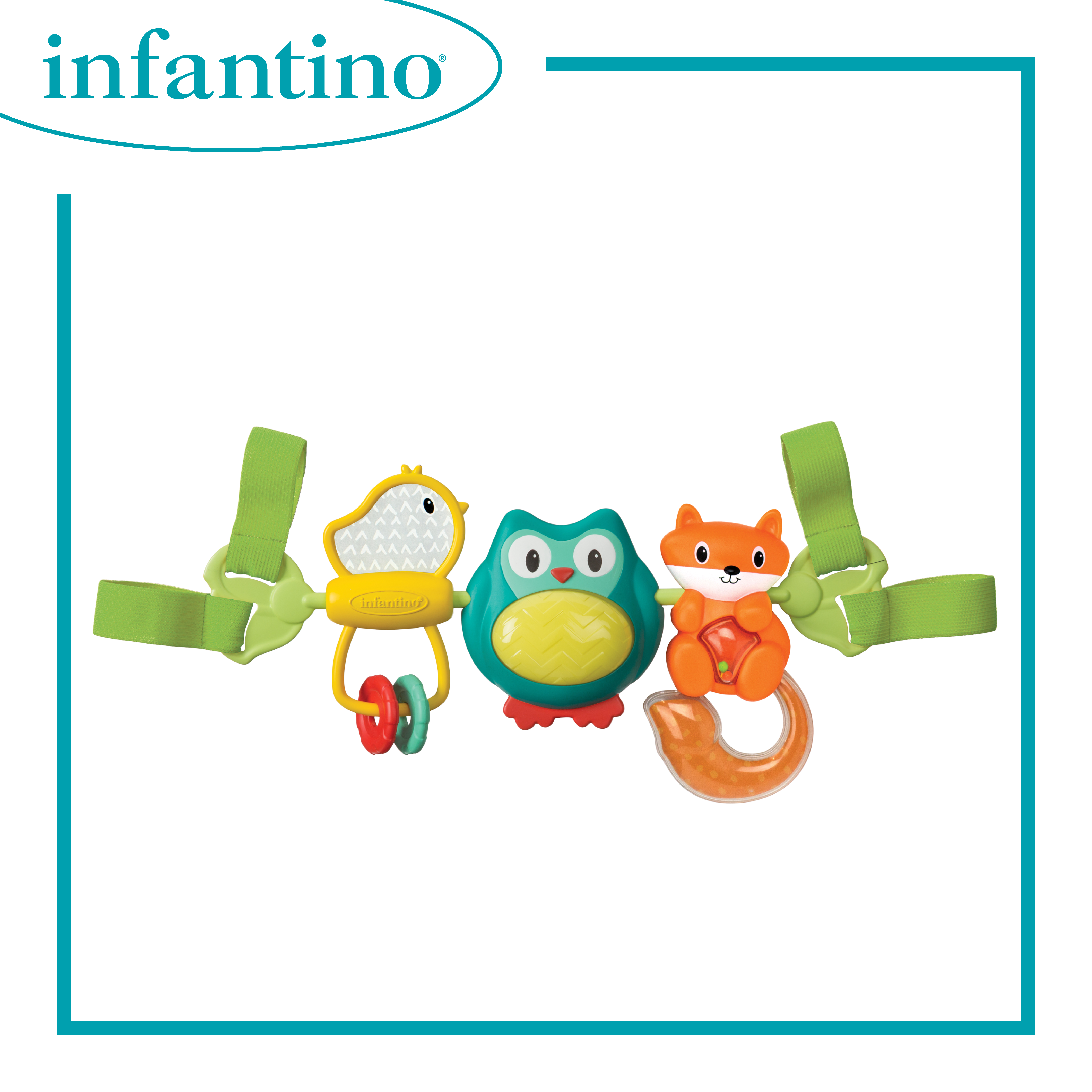 適合初生嬰兒使用 按貓頭鷹的肚子會有燈光和音樂 可掛於嬰兒車及嬰兒汽車座椅 玩具可360度轉動