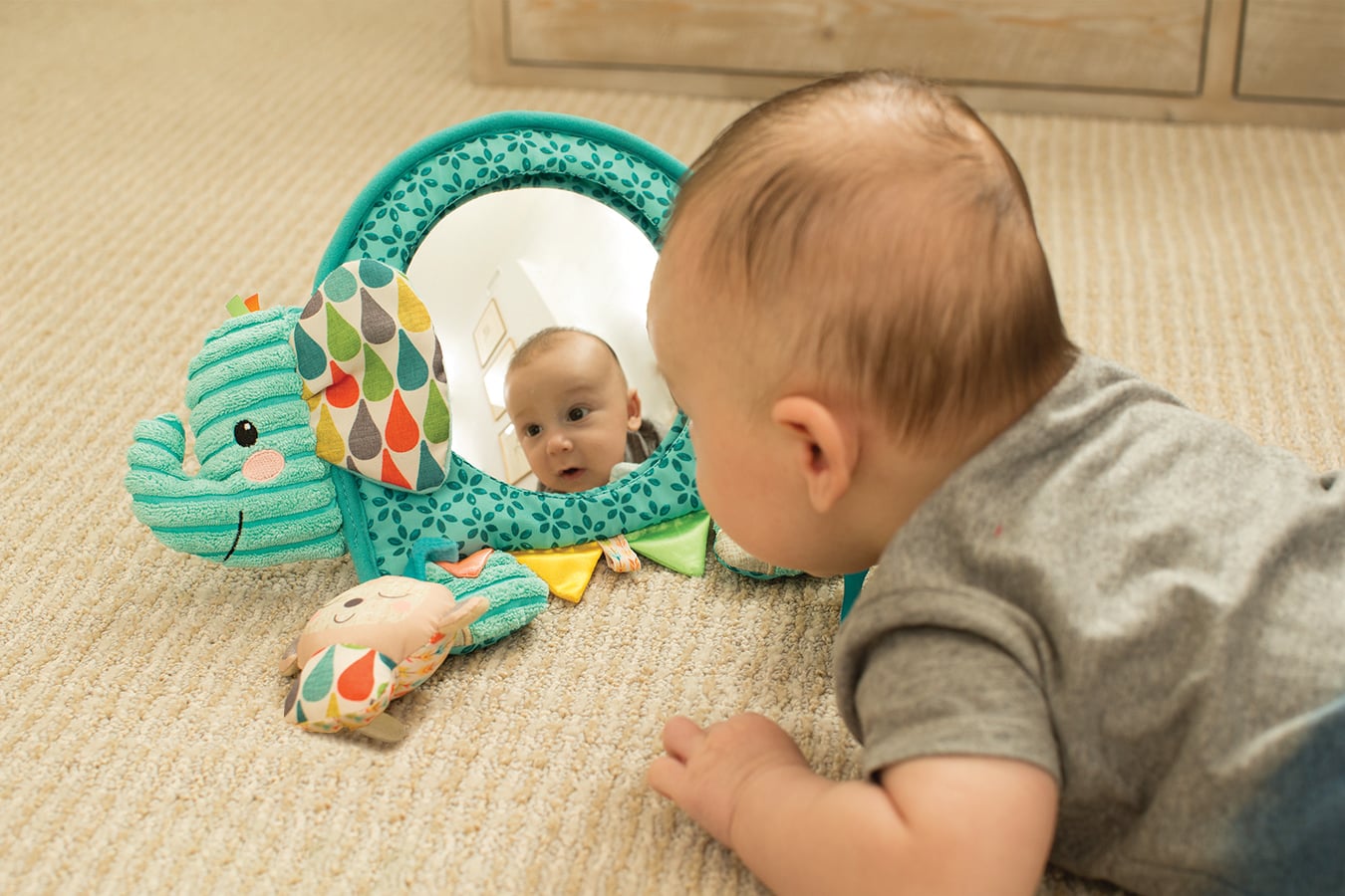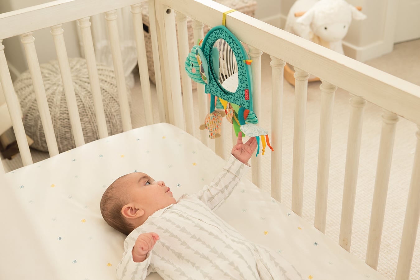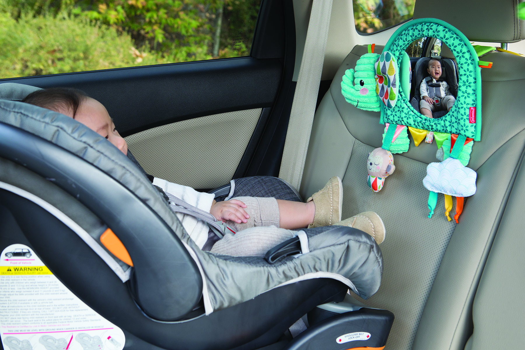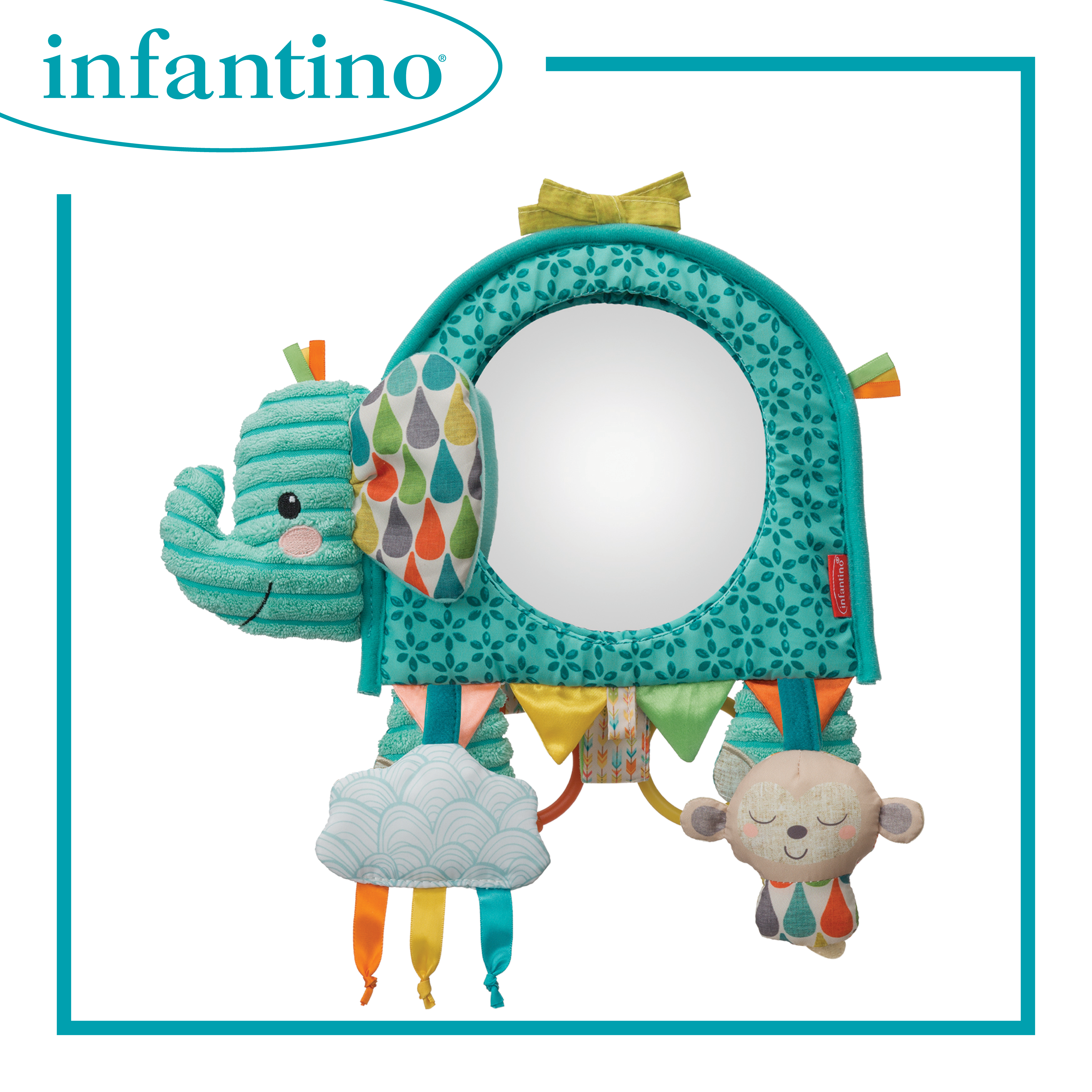 適合初生嬰兒使用 大圓頂後視鏡提高車內可見度 大夾子方便附在嬰兒車車柄上 也可支撐在地上耍玩 同時帶子可輕易掛在嬰兒床 有趣動物圖案及顏色及質感